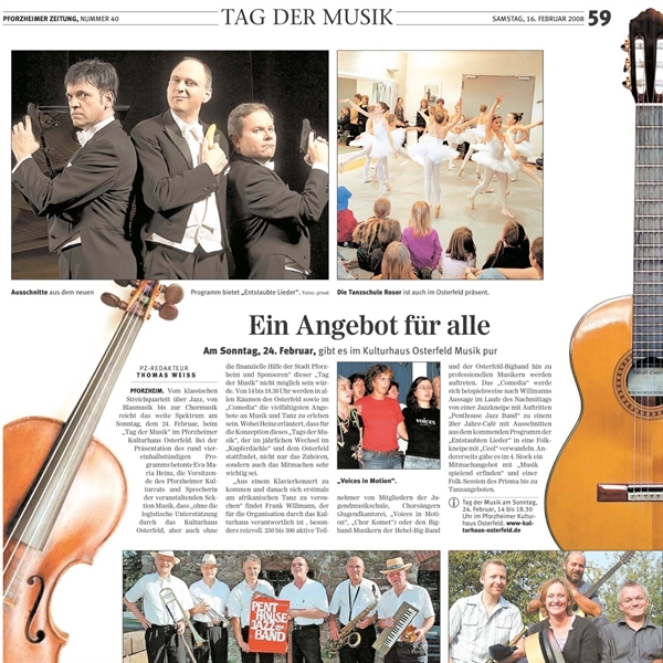 Am Sonntag, 24.Februar 2008 gibt es im Kulturhaus Osterfeld Musik pur